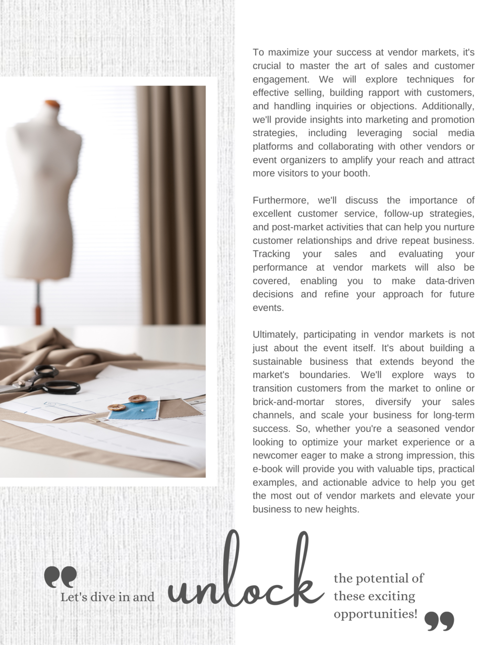 Don't miss this invaluable resource that will transform your vendor market experience. Get ready to unlock your vendor market success and advance your business!